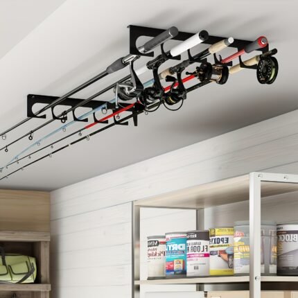 Wall-Mounted Multifunctional Fishing Rod Display Rack – Horizontal & Vertical Storage for Lure Rods, Nets, and Hand Rods