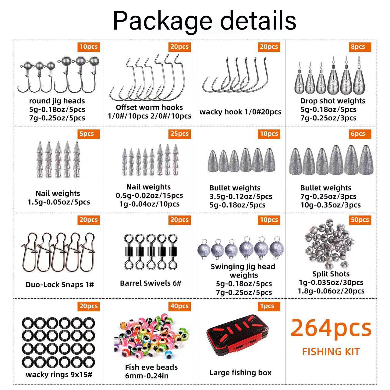 264-Piece Waterproof Rock Fishing Accessory Kit – Hooks, Floats & Sea Fishing Tackle Box