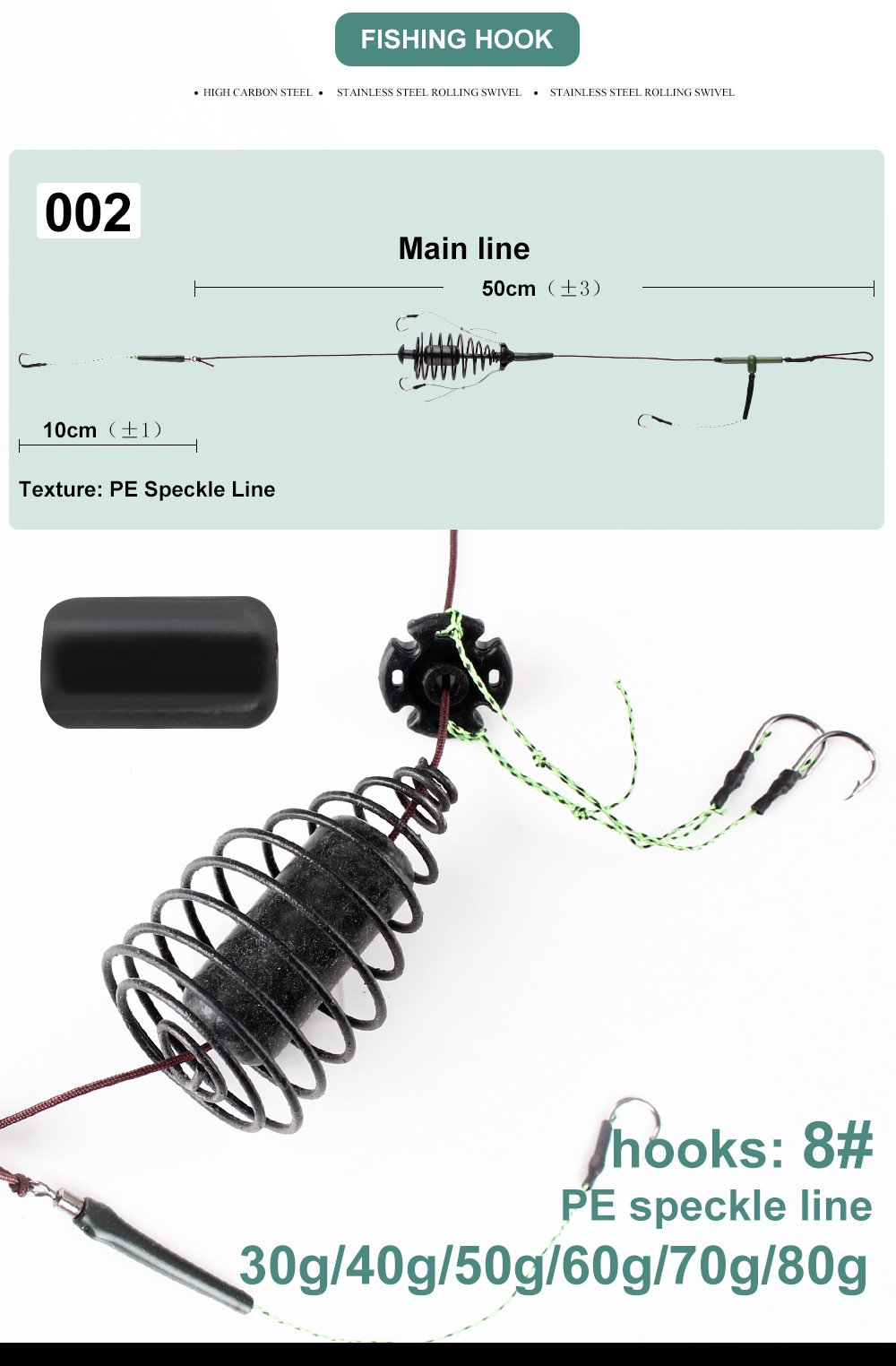 Carp Fishing Hook Rig with Bait Cage & Spring Hook – Strong Braided PE Line for Feeder Fishing