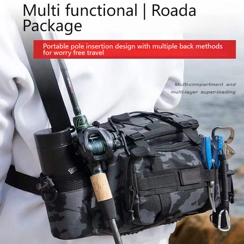Fishing Lure Waist & Crossbody Bag – Waterproof, Large Capacity for Rods and Gear